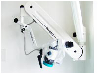 歯の根の部分を治療するために、「マイクロスコープ」という歯の根っこの中を診るための拡大顕微鏡を使っています。一般治療だけではなく、インプラントや審美治療にも活用できるこの機械を使用することで正確なお口の状況把握ができ、精密な治療が可能です。